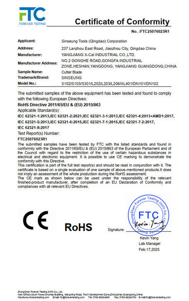 La société Sinseung excelle dans le contrôle de la qualité, avec une réputation de longue date pour la production de produits de haute qualité qui répondent aux normes du marché et des clients.Avec plus de 60 ans d'expertise dans le domaine des couteaux et lames utilitaires, Sinseung utilise des techniques de production avancées qui combinent des machines automatisées avec un savoir-faire manuel pour assurer l'excellence constante de ses produits.L'entreprise respecte des exigences strictes pour les matières premières utilisées dans ses lames.Sinseung accorde également la priorité à la formation continue et à l'évaluation de ses travailleurs afin d'améliorer leurs compétences et leur sensibilisation au contrôle de la qualité.,l'entreprise accorde une grande importance aux commentaires des clients, en incorporant rapidement des suggestions d'amélioration.Cette approche globale souligne les solides capacités de contrôle de la qualité de Sinseung et son engagement à fournir des produits de qualité supérieure à ses clients.